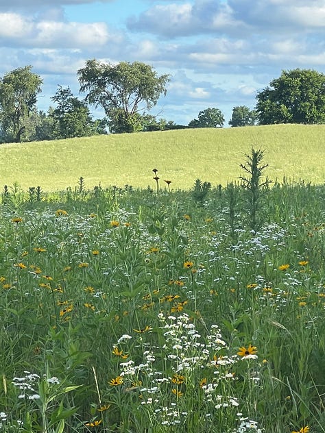 We also need to move easily between spaces- both buildings and sections of land - connecting them with paths and farm roads. These byways invite us to walk the land often, the best thing a land steward can do. Alas, the proverb “The best fertilizer is a farmer’s footprints.” To that end, John and I have spent many hours pulling a trail mower behind a UTV, enjoying sunsets and music, navigating new fence lines, and making notes on various things. Being attentive to the changes taking place is extremely important while also giving us great pleasure. It is with the utmost humility, however, that we do this work, trying to move forward without making too many irreversible decisions. I am grateful to our recent guests for reminding me of the varying human relationships to space, taking me out of the weeds and reinforcing the privilege it is to be here.