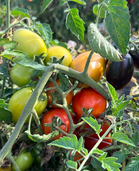 As I write, I’m going into my third consecutive weekend of freezing. and dehydrating, the slicer tomatoes, making sauces and savory jams with the Romas, and blistering the skin off Italian fryer peppers over a flame. I’m channeling a little Barbara Kingsolver - not at the writing desk, but because she is also a role model for us September tomato mavens!! I have to take deep breaths and remind myself that what can’t be preserved will be donated (already sent 40 pounds to the local fire house) and the rest will contribute to our beautiful, rich compost used to promote next year’s growth….the beauty of a regenerative system.